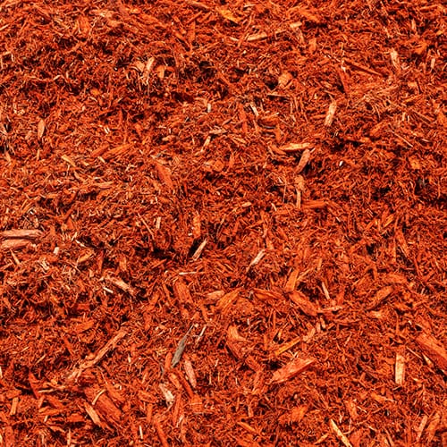 Composition : Paillis fabriqué à partir de broyage de résidus de cèdre, coloré en rouge